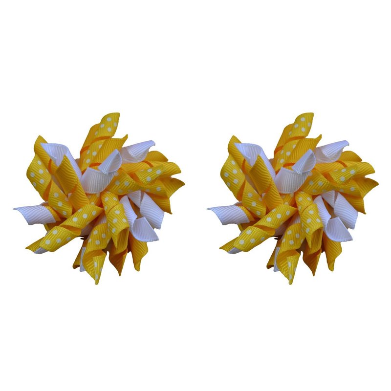 Korker Hair Bow Set for Girls (2) 2.5 Inch Hair Bows by Funny Girl Designs (Yellow)