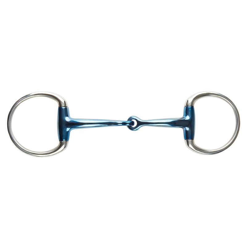 The JP Korsteel Blue Steel Jointed Eggbutt Snaffle Bit is a stainless steel horse bit with a fine hand-polished blue steel finish that gives off a taste enjoyed by the horse and stimulates salivation, by oxidising when in contact with air and humidity. The JP Korsteel collection feature a unique curved shape to the mouthpiece designed to reduce the "nutcracker" action and to alleviate pressure on the tongue and bars of the mouth. This design prevents contact with the roof of the horses mouth allowing for effective communication between horse and rider whilst encouraging relaxation and salivation. The eggbutt snaffle is a fixed ring offering a consistent contact in the horses mouth.