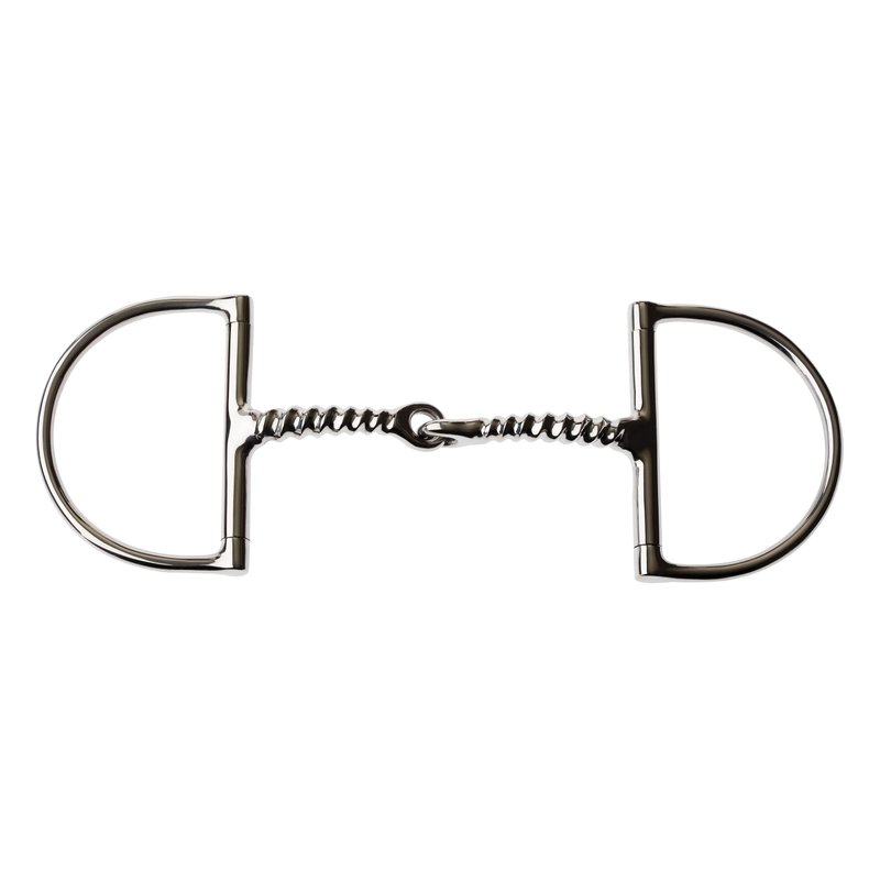 The JP Korsteel Stanless Steel Corkscrew Mouth Dee Ring Snaffle Bit is a curved bit to reduce the "nutcracker" action and to alleviate pressure on the tongue and bars of the mouth. Prevents contact with the roof of the horses mouth. Allows for effective communication between horse and rider whilst encouraging relaxation and salivation. Dee ring compromises between an eggbutt and a full cheek snaffle, preventing pinching at the corners of the mouth and without the dangers posed by the arms of a full cheek snaffle. Corkscrew mouthpiece creates more pressure points on the bars making it a stronger bit.