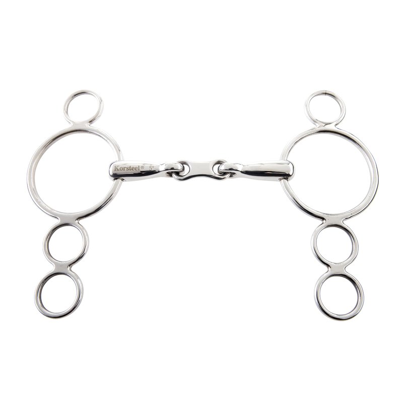 Korsteel Stainless Steel French Link 3 Ring Dutch Gag Bit, 5.5"