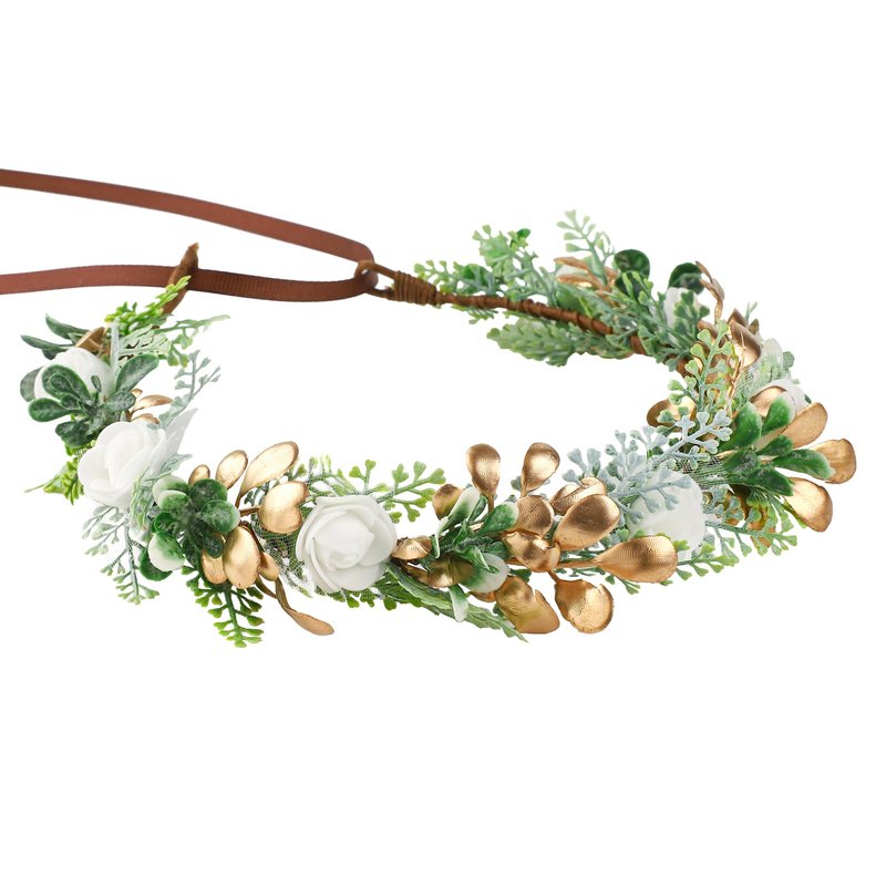 - Materials: Exquisite workmanship Pretty floral crown made of artificial flowers, fabric leaves, vine wire frame and paper tack tape ,which is both healthy and environmentally friendly