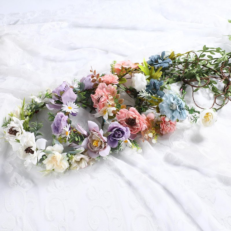 - [Easy to Wear]:We designed the flower crown to be lightweight and easy to wear,Adjustable size with the soft ribbon,so it can fit any head perfectly,it will be firmly fixed on the head. And the hair clips are portable,So you can get fashionable hairstyle anytime and anywhere.