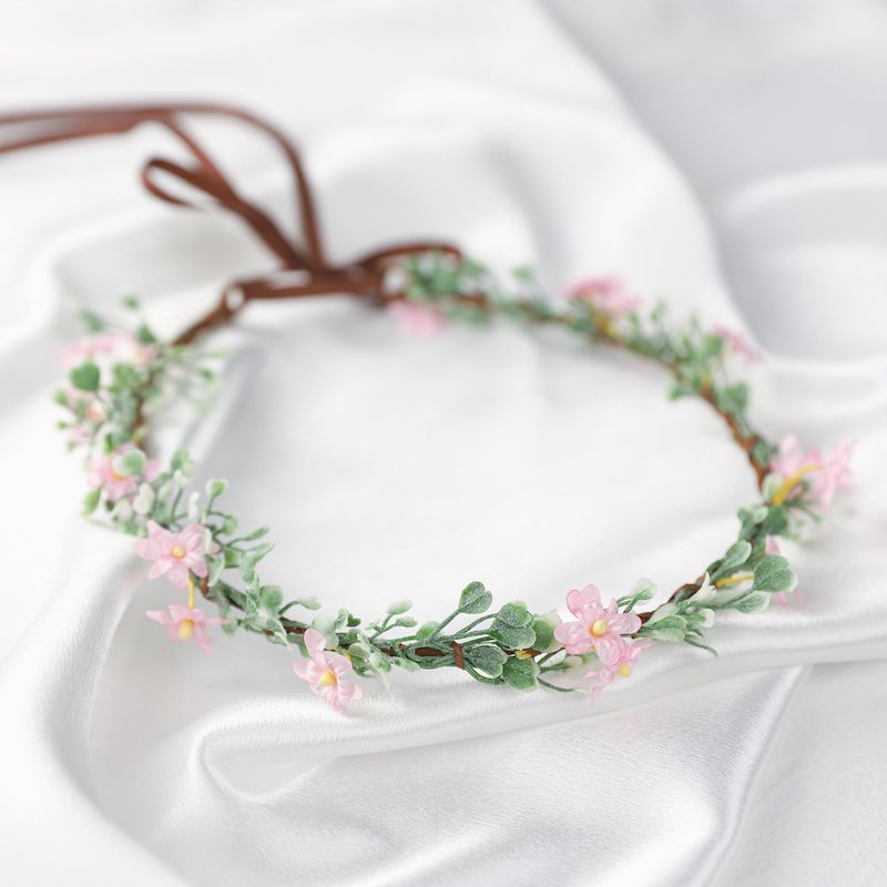 KorViSHOW Handmade Pink Flower Crown Girls Hair Wreath Bridal Flower Headband Green leaf Headpiece Flower Hair Accessories for Weeding Birthday Party Cosplay