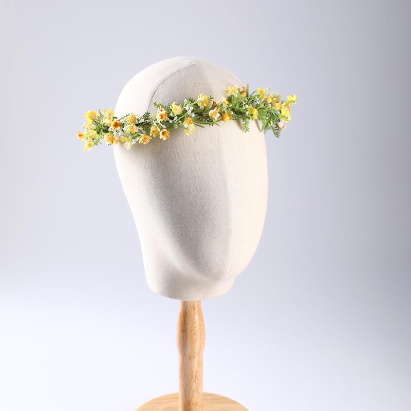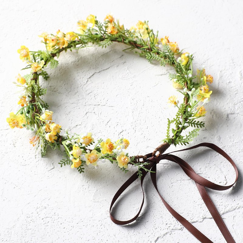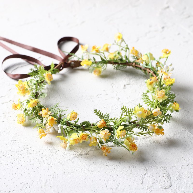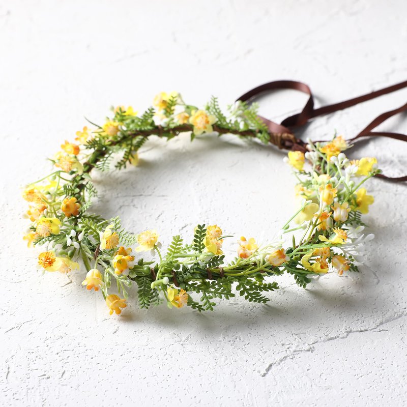 KorViSHOW Yellow Flower Crown Headpiece - Yellow Babys Breath Flower Headband Sweet Handmade Flower Headpiece for Festival Party Vacation Cosplay Photography Props