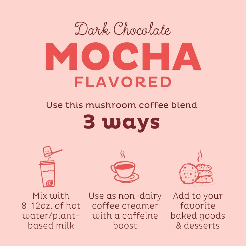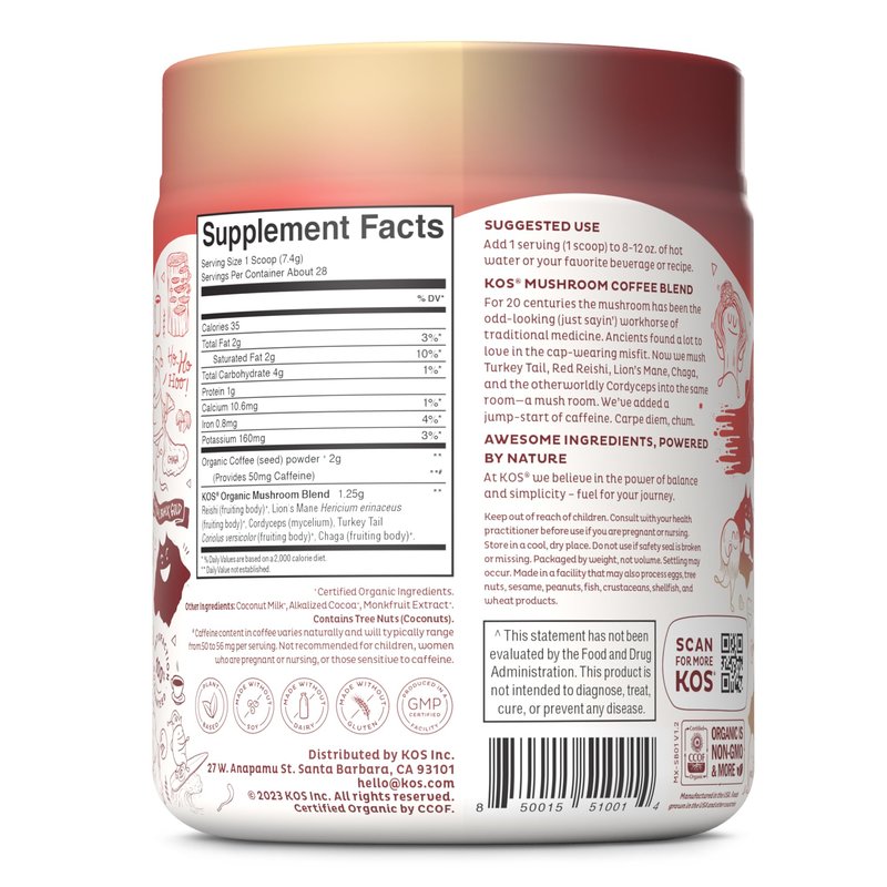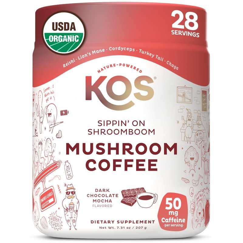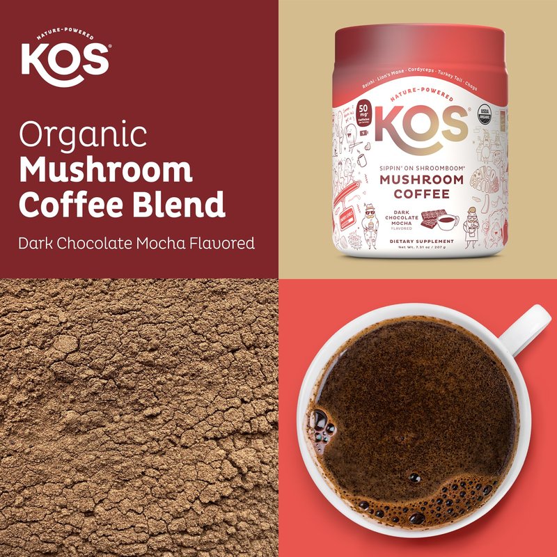 KOS Mushroom Coffee - Dark Chocolate Mocha Flavor - Organic Instant Coffee Mix with Reishi, Cordyceps, Lion's Mane, Chaga & Turkey Tail Mushrooms