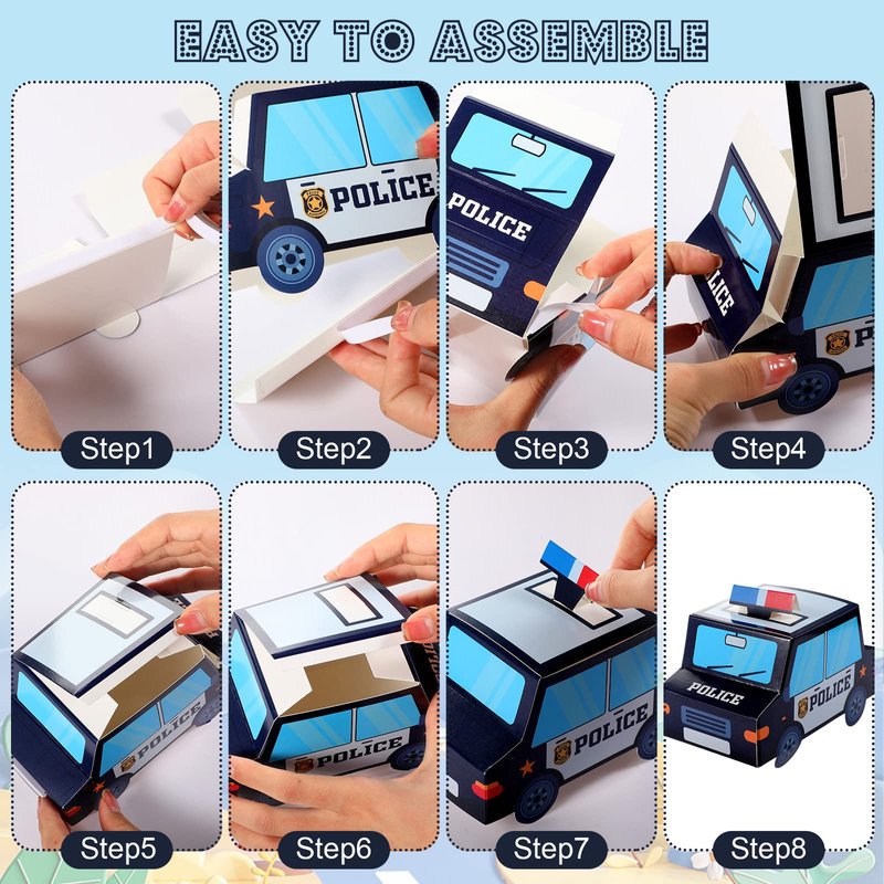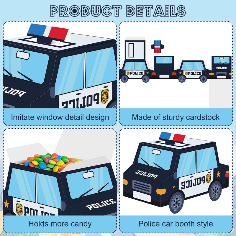 - Cute Small Size: each police treat box measures about 5.9 x 3.2 x 3.5 inches/ 15 x 8 x 9 cm when assembled, large enough to hold small police party favors or gifts like chocolates, cookies, candies or treats; These police candy boxes are easy to install, will have fun doing the job