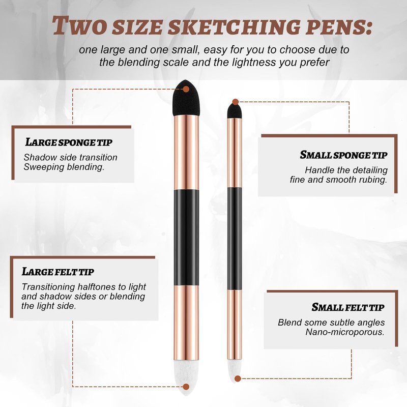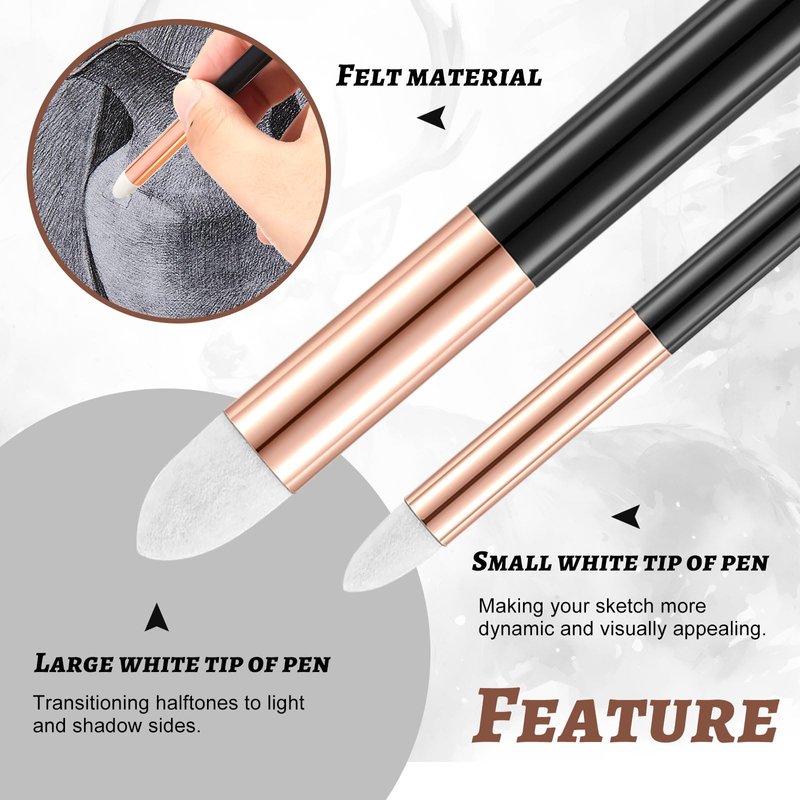 - Ample Quantity: the package includes 6 pieces of blending stumps, coming in 2 sizes; This ample quantity makes it suitable for group activities in art classes and can also serve as a useful addition to your art kit, ensuring that you will always have pens on handy while working on your masterpieces; Due to the manual processing of natural wool, the white felt tip may contain some black wool, but does not affect the actual use