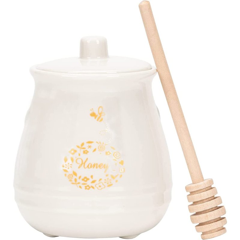 - 【Must-Have Addition】- No more crystallizing. Your honey is always ready to go. This classical yet natural design honey jar compliments many decor. Comes with a decorative wooden dipper and the lid can effectively prevent honey in the pot from dust.