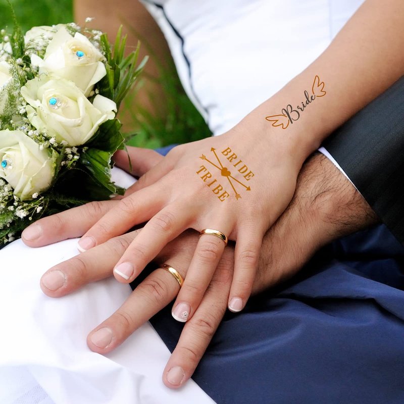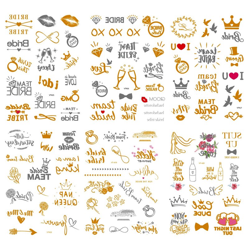 - 【WEDDING TATTOOS】-- 6 sheets gold party tattoos which are measured dimension 5.9'' * 8.26''. Your friends will be surprised you took a realistic tattoo! Great fun for parties, special events also for testing how would a real tattoo look like.
