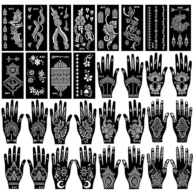 - EASY TO APPLE - The body art stencils are adhesive and removable, just find the one you like and stick it on your body, and fill in the hollow, and then tear off it, done! Perfect for Glitter Tattoos, Henna Tattoo, face paint crayons, face paint brushes,Body Art, Temporary Tattoo Ink for both kids and adults.
