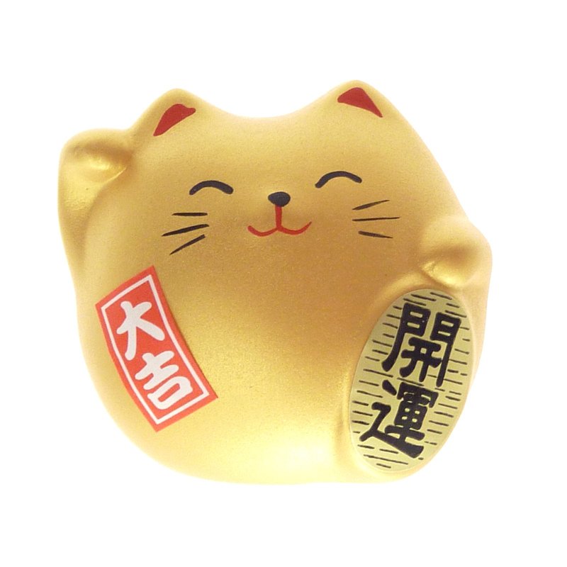 Kotobuki Maneki Neko Charm Kai-un Collectible Figurine, Fortune, Gold