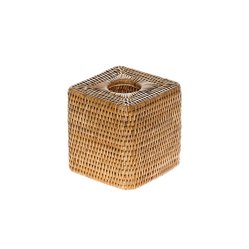 KOUBOO 1030055 La Jolla Rattan Square Tissue Box Cover, 5.5" x 5.5" x 5.75", Honey Brown