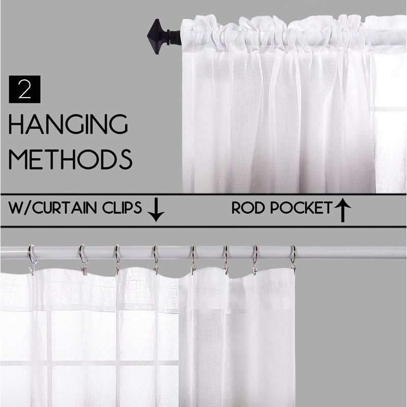 - LINEN LIKE EXPERIENCE: With these full dull & subtle slub faux linen textured & light and airy fabrics,the sheer curtains help enhancing privacy while still letting light come through compared with normal transparent sheers.