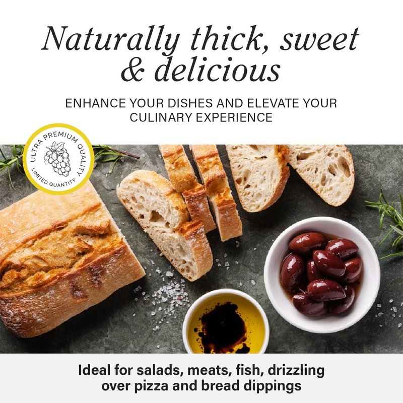 - Unique Consistency: A hint thicker than most kinds of balsamic vinegars and halfway between a glaze reduction and a plain Balsamic vinegar; Elevate your meals with this high-quality product which works great on meats, seafood, vegetables, ice cream, and more!