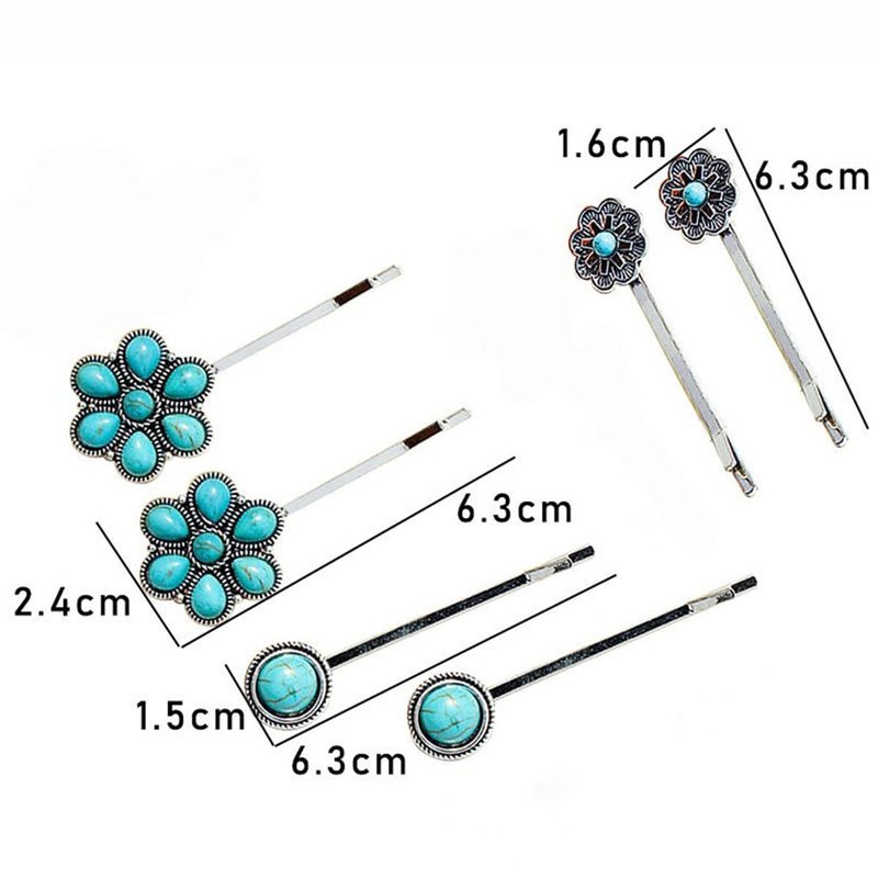 - Bobby pins measure about 2.75 inch in length. With turquoise stone decor. 4 different sets to choose from. Due to the variations in monitors, phone screens and browsers, the color of products may appear different in person or on different monitors.