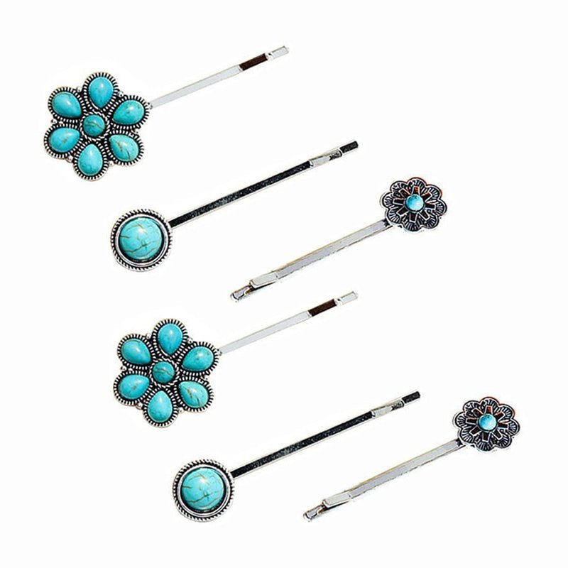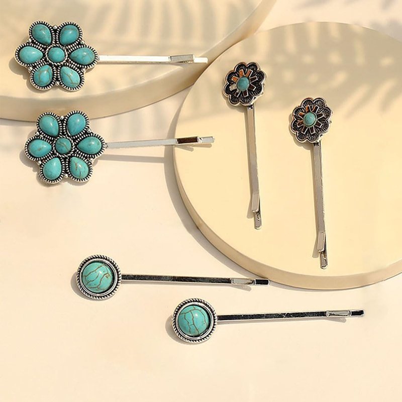 KOVOLITU 6 Pcs Bobby Pins Women's Western Style Turquoise Howlite Stone Hair Clip Cowgirl Chic Retro Hair Pins