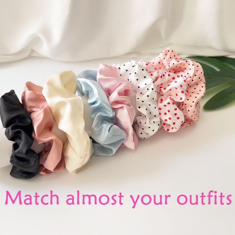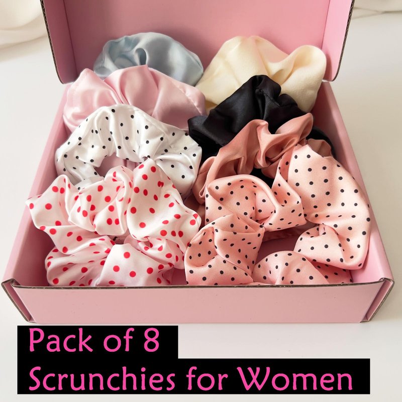 - Premium Stain hair scrunchies set is a must have hair accessories for women and girls. Perfect hair ties, hair elastics for thick hair and thin hair alike, Scrunchies can be used on all different type of hairs ranging from curly, wavy, coily to straight hair and other hair textures as well.