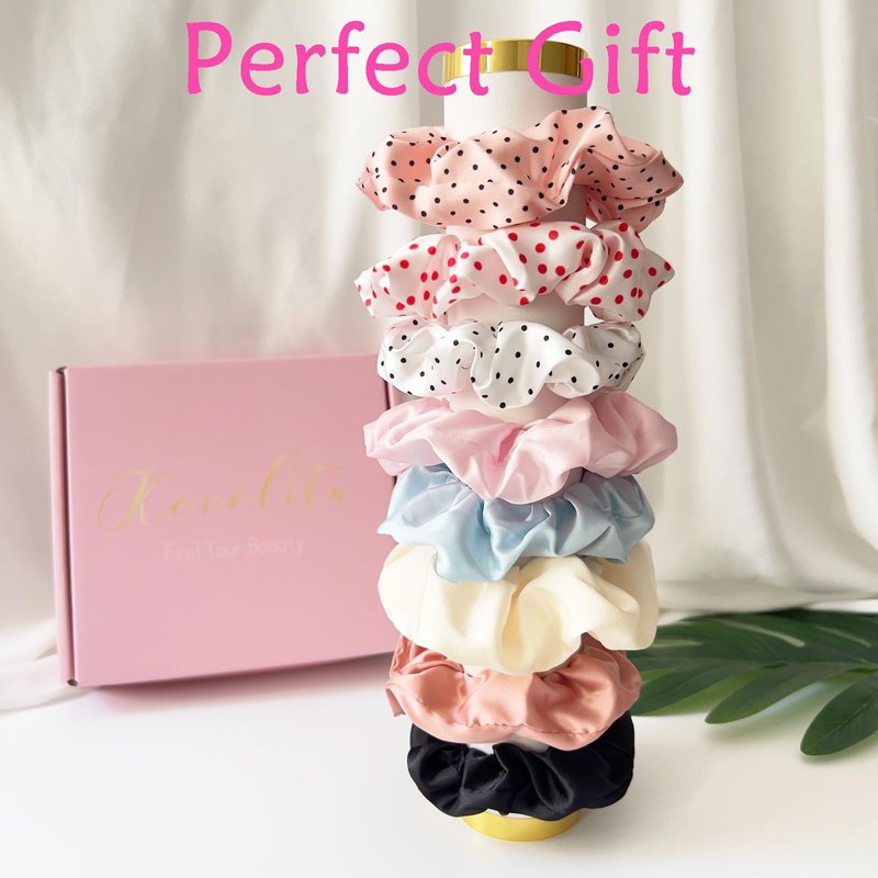 KOVOLITU Scrunchies for Women Satin Hair Scrunchies Softer Than Silk for Hair Big Scrunchy Ponytail Holder -8 Colors