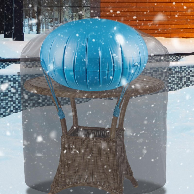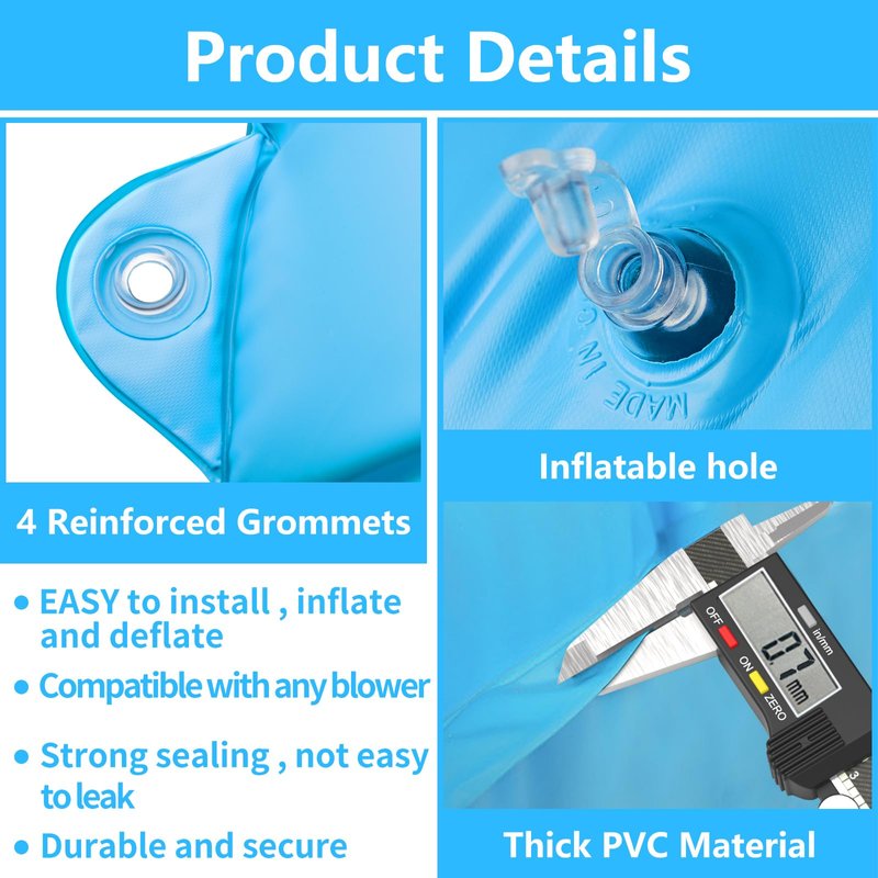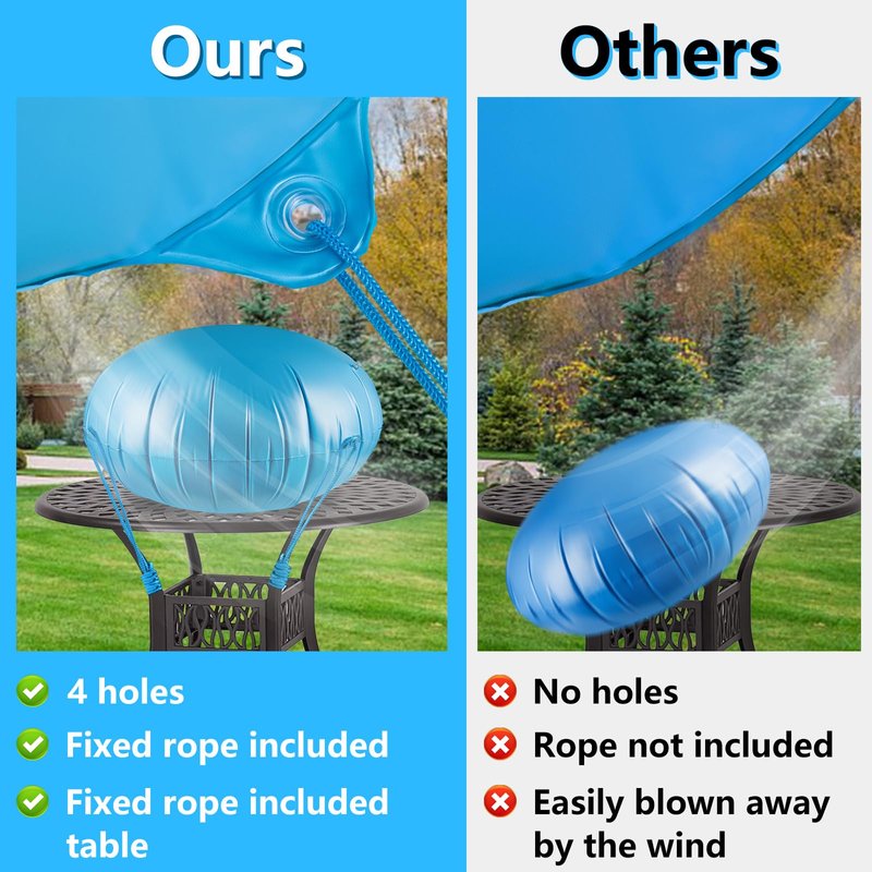 - 【Reliable Fixation】There are 4 holes also comes with a 20ft long rope on the edge of the air pillow, which can be fixed to the center of the table using the rope included with the product. This ensures that the inflatable pillow does not move in and ensures that the pressure of bad weather on the table is evenly distributed. Easy and fast, you can install it in several minutes.