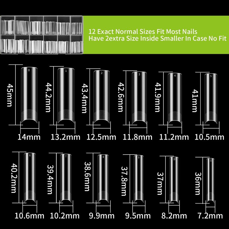 - 12 Size Options: There are 12 different sizes for you to choose from, each size is pre-numbered 0-11, all placed in a storage box, convenient for you to choose the right size. The semi-covered square nail tip is non-marking and smooth, easy to color, and will not damage your original nails.