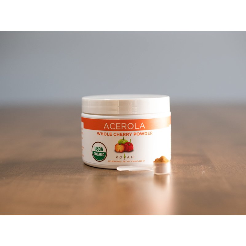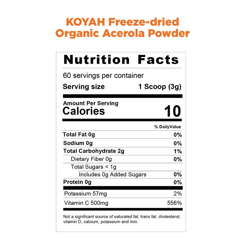KOYAH - Organic Acerola Powder: Freeze-Dried, 100% Pure, 500 mg Natural Vitamin C per Scoop, Whole-Food, Non-GMO, Vegan, 60 Servings, Made from acerola Cherries Grown in Brazil
