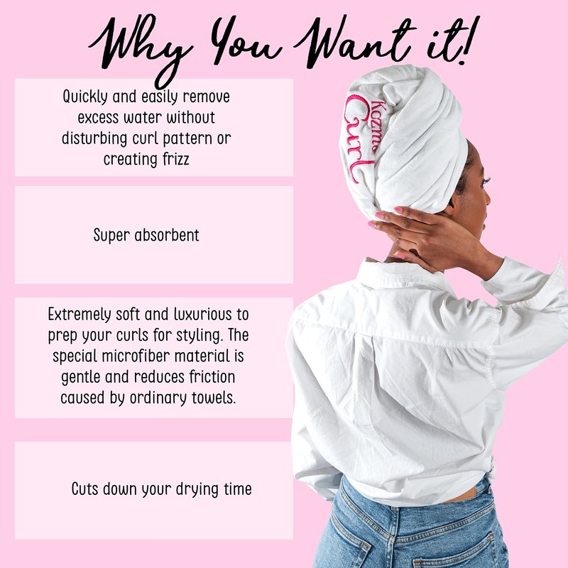 Amazingly soft and luxurious, the Kozma Curl Microfiber Towel is a must-have for all curl types! Absorbent material dries hair quicker. Enjoy less frizz! This gentle towel absorbs the excess water from your hair, without the frizz causing friction of ordinary towels. About Kozma Curl brand: Kozma Curl products are made with love NO SILICONES NO SULFATES PARABEN FREE VEGAN / CRUELTY FREE With high-quality natural key ingredients which nourish and protect the hair, there is plenty to love about Kozma Curl Products. Barbary fig (cactus fruit), macadamia seed oil, coconut oil, aloe leaf, & soy protein are just some of the ingredients that make them gentle yet effective resulting in frizz-free, healthy, hydrated and defined curls. Kozma Curl products are designed to be easy and simple to use so that anyone, with any curl type can realize the full potential of their natural hair texture. We offer curl care and curl styling solutions through the form of hair products (cleansers, moisturizers, treatments and stylers) and tools (such as clips, towels, and diffusers) to help you embrace and love your curls.