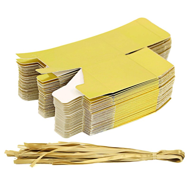 KPOSIYA 100 Pack Favor Boxes 2x2x2 inch Candy Boxes Gold Gift Boxes with Ribbons for Wedding Baby Shower Decorations Birthday Party Supplies