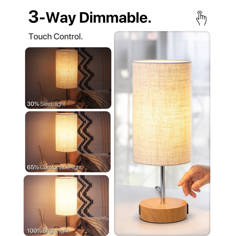 - ❤️【Minimalism Decor for Your Spaces】―Our touch dimmable table lamp is small in size which is really perfect to decorate anywhere of your house.The small desk lamp is topped with 5.7-inch-diameter linen lampshade, and has metal base with wooden finishing, adding texture to your spaces. A ideal USB nightstand lamp for bedroom, living room, study room, kids room, etc.