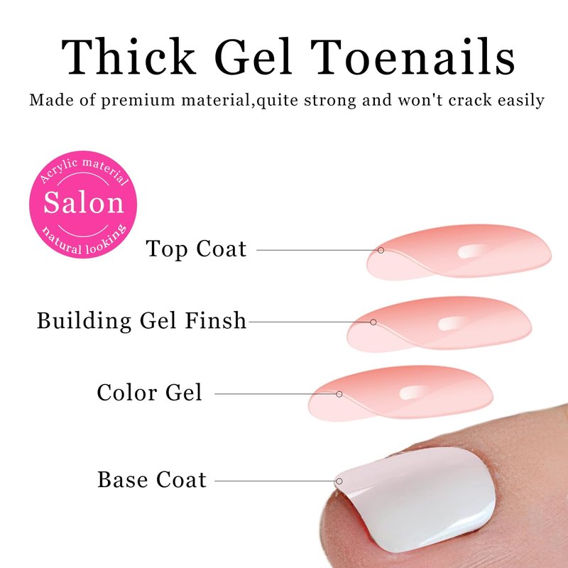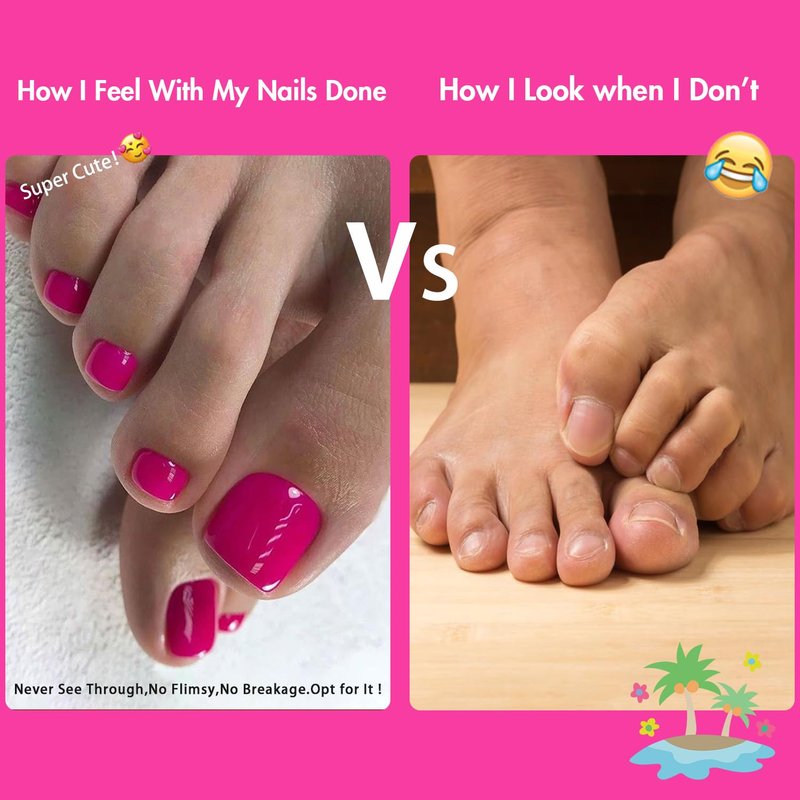 - 🌸【Perfect For Every Occasion】Acrylic press on toe nails stickers are very suitable for different occasions,such as party,prom,travel,shopping,dating.Short length toenail press nails glue will not affect your normal life.