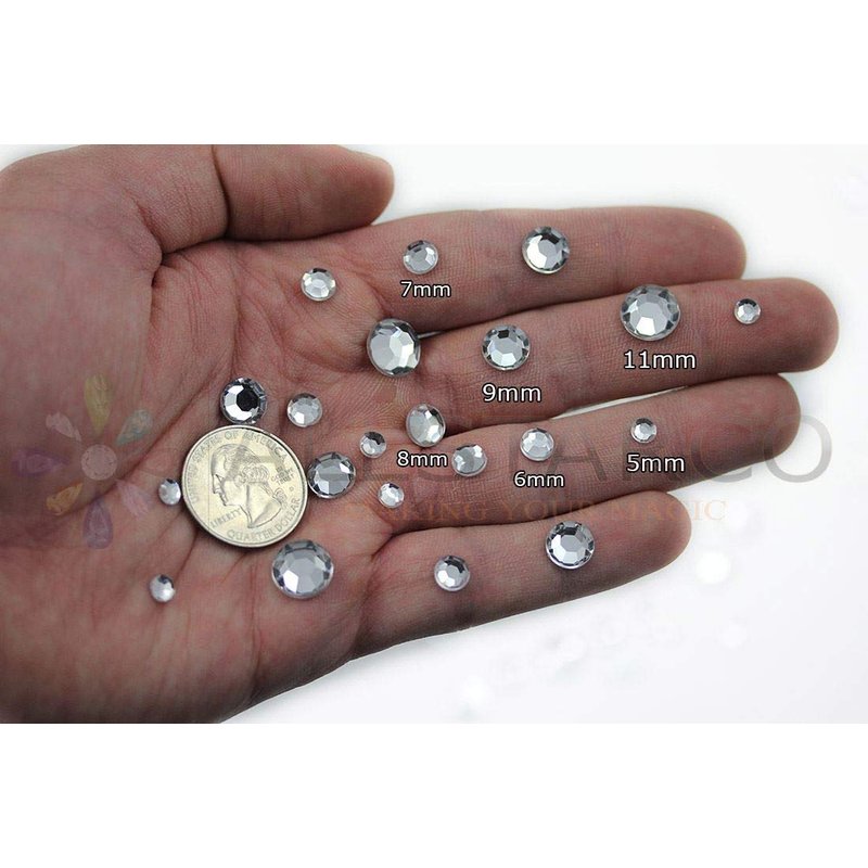 - Acrylic (plastic) flat back stick on rhinestones are 4mm is about 3/32" in diameter. Most popular for face painting and invitations.