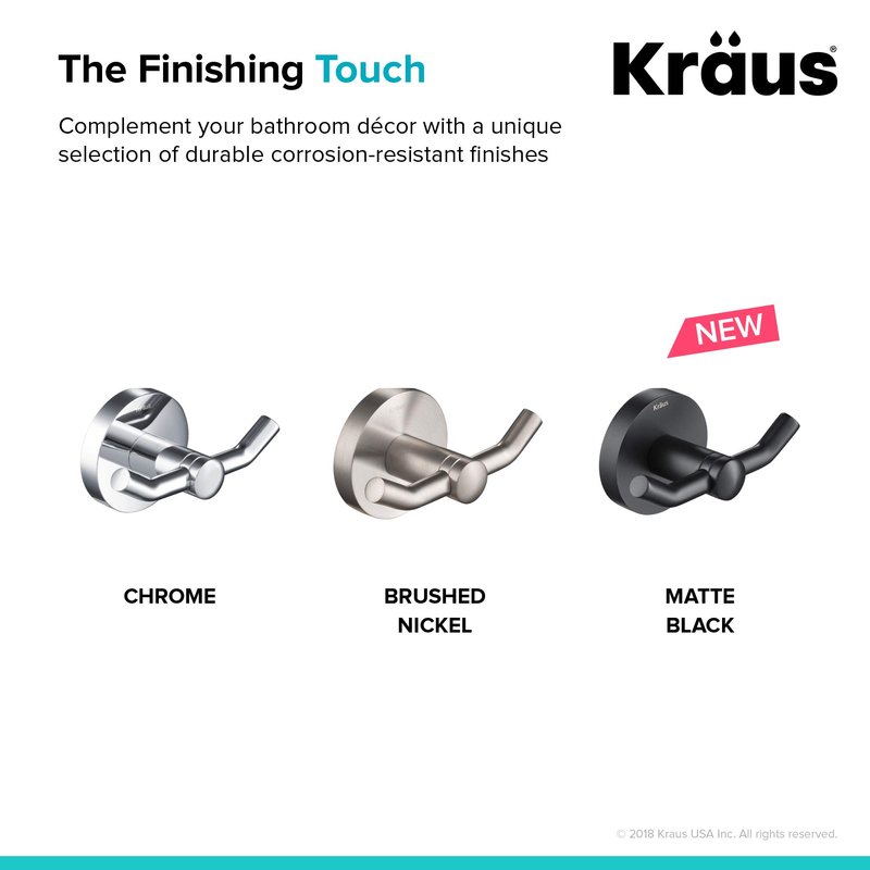 Kraus Elie Bathroom Robe and Towel Double Hook, Brushed Nickel Finish, KEA-18802BN