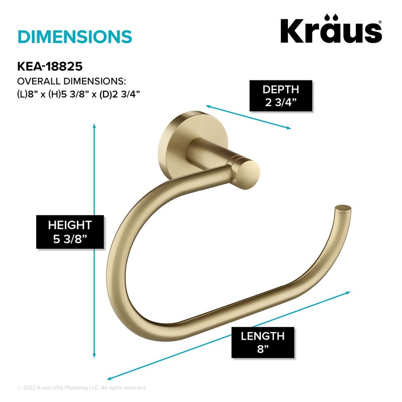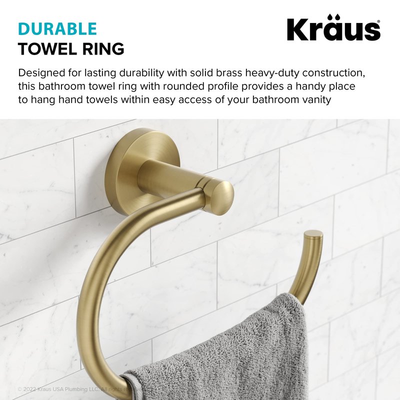KRAUS Elie Bathroom -Towel Ring, Brushed Gold Finish 8 Inch