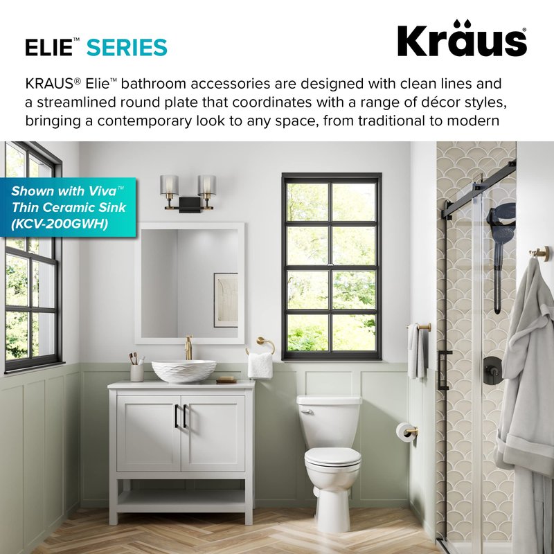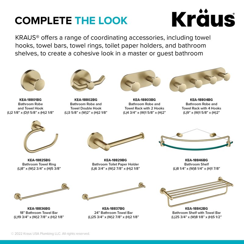 - COMPLETE THE LOOK with a range of coordinating accessories (sold separately), including bathrobe hooks, towel bars, towel rings, toilet paper holders, and bathroom shelves, to create a cohesive look in a master bath, powder room, or guest bathroom – PAIRS PERFECTLY with KRAUS bathroom faucets for a beautifully coordinated look in any bathroom