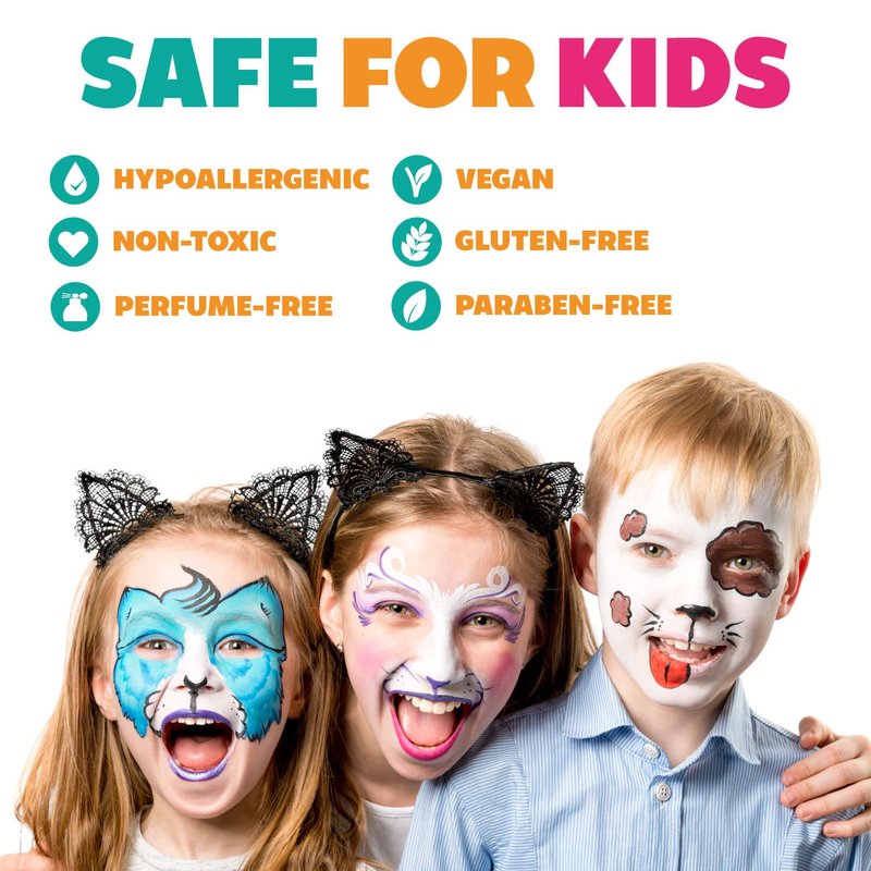 - PROFESSIONAL QUALITY FACE PAINT: Kraze FX Face Paint is a wax-based formula with high pigmentation. Quick drying formula is equally good for blending, base work or layering. Wax based formula offers a smooth, solid coverage that will flex with skin movements to last all day without fading or cracking. Kraze Face Paints can be easily activated with water and applied using a flat brush or sponge. Easy to remove with soap and water. Non-toxic, hypoallergenic, skin friendly, vegan formula.