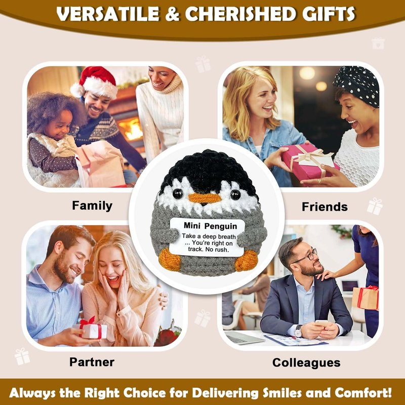 - CROCHET PENGUIN WITH THOUGHTFUL MESSAGE: This cute penguin comes with a comfort message card that says, "Take a deep breath ... You're right on track. No rush." It’s designed to bring encouragement and a reminder to stay calm and positive during stressful moments