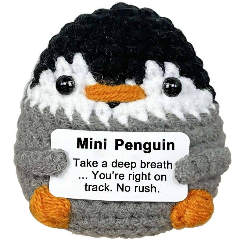 Meet the Krinisou Positive Crocheted Penguin, a thoughtfully handcrafted plush toy designed to bring calm, positivity, and encouragement into your life. This adorable penguin comes with a heartwarming message card that reads, "Take a deep breath ... You're right on track. No rush." Whether you're dealing with stress, anxiety, or simply need a reminder to slow down and enjoy the present moment, this little penguin is here to offer gentle help.