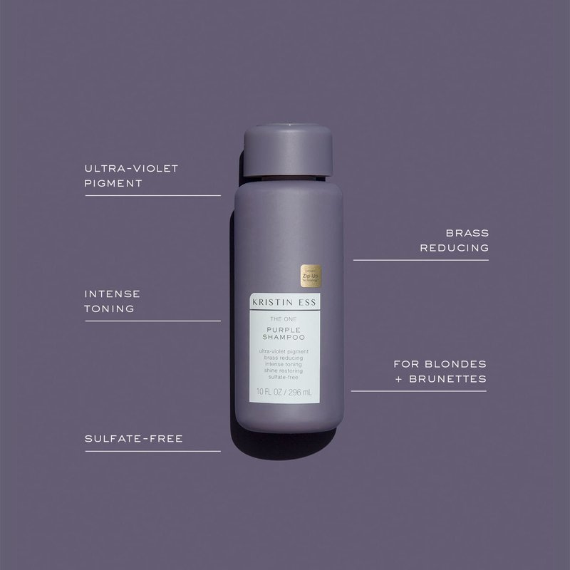 - “I wanted to create a purple shampoo that is great for toning blondes + brunettes and is also sulfate-free...I’ve always had a hard time finding that combo. If you like ashy tones or even pastel lavender tones, you can use this every time you shampoo. If you like neutral tones, use it only when needed to cut brass. Use this with or without The One Purple Conditioner on natural or color-treated hair.” - Kristin Ess