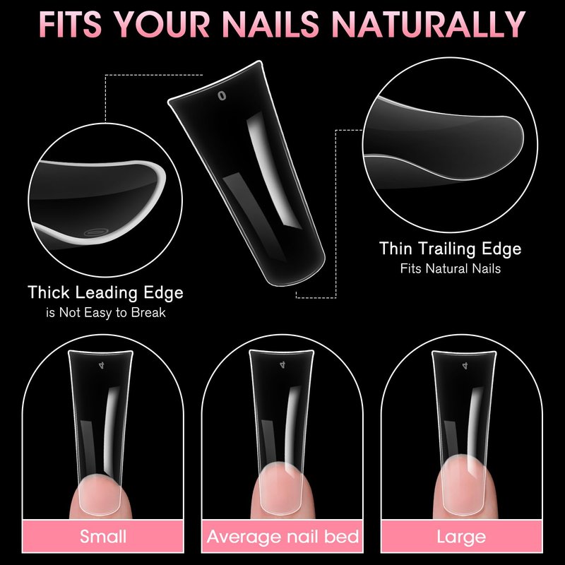 - 【Easy to Use and Store】: Crystal duck feet style nail tips is simple to use. After selecting wide french nail tips size suitable for your finger,trim the natural nail, apply glue on the wide french nail(not include glue), gently press acrylic nail tips onto your nail bed and wait for the glue to solidify.Then you can DIY pattern on curved false nails. The c curved nail tips piece comes with a clear box with 12 small boxes inside,which is very convenient for storage and storage.