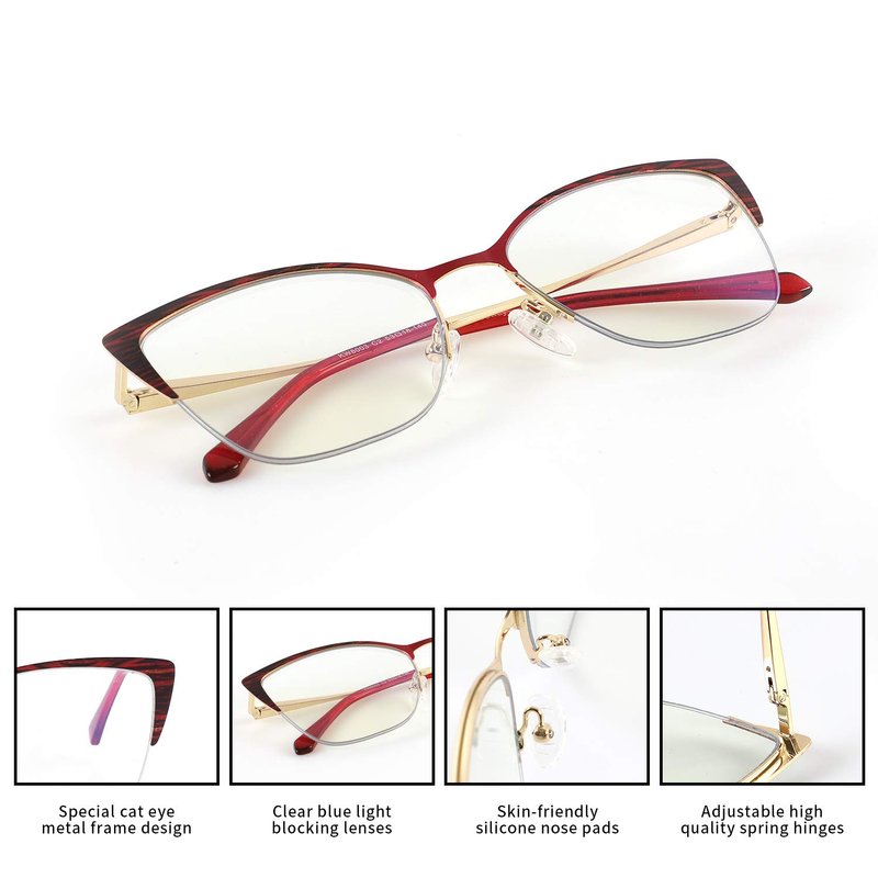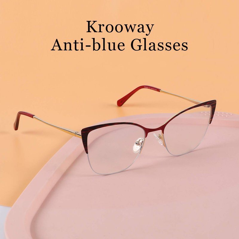 Krooway Cateye Blue Light Blocking Glasses for Women Anti Eyestrain Computer Game Glasses Metal Frame