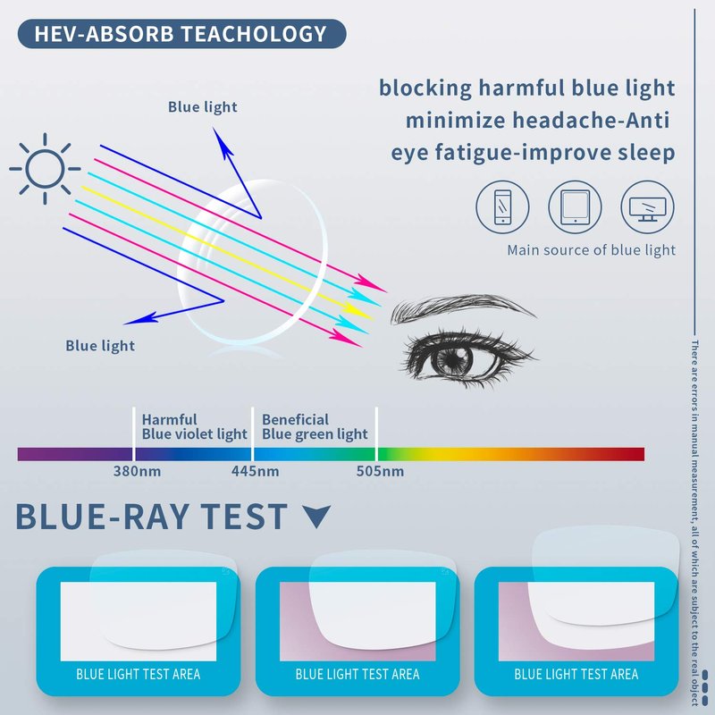 - 【Anti Glare】Blue light blocking glasses can cut UV 400 (ultraviolet ray) and reduce symptoms of eyestrain during prolonged computer exposure or reading.These glasses are best used for long time to block harmful light and protect your eyes.