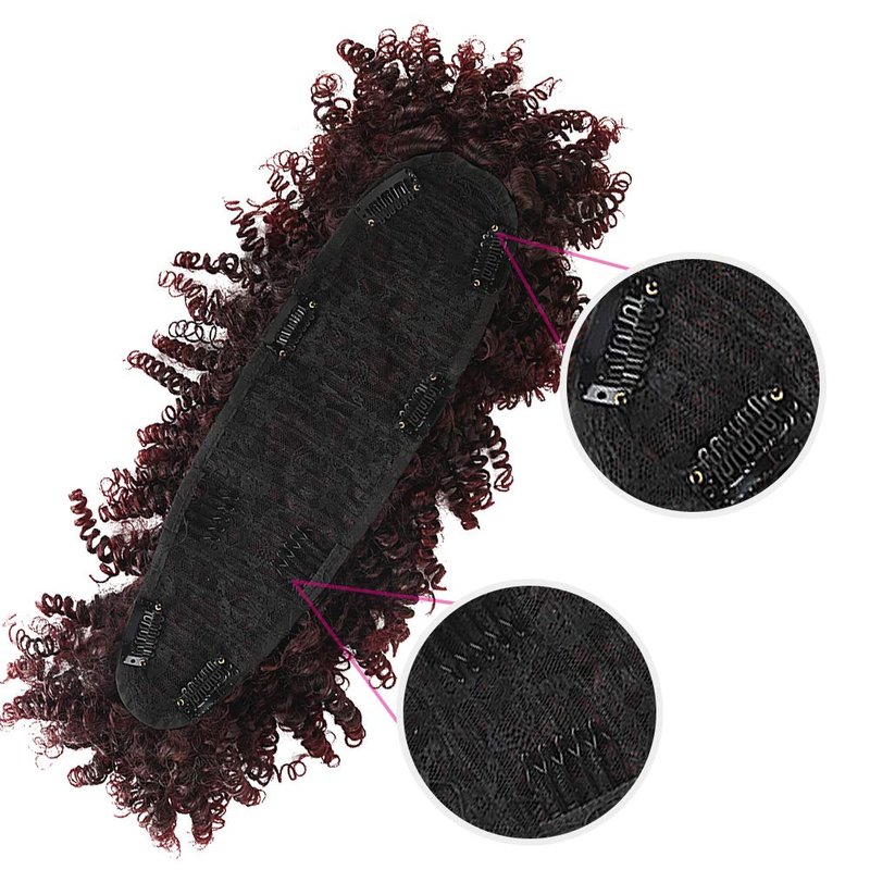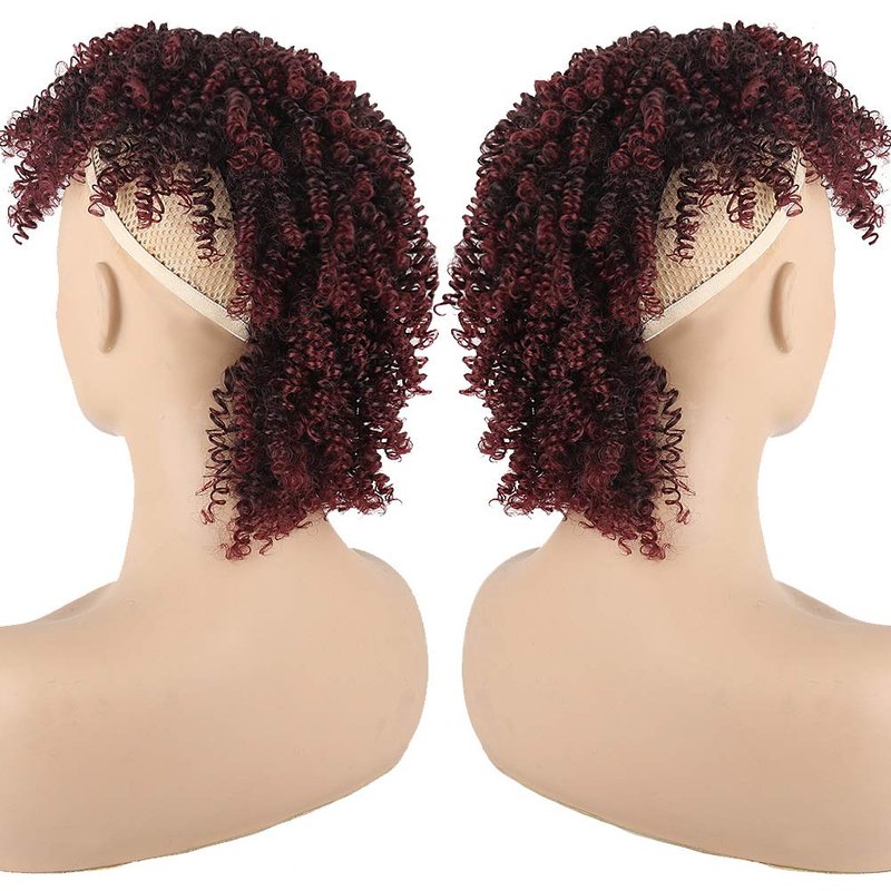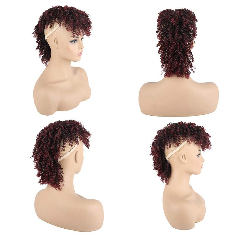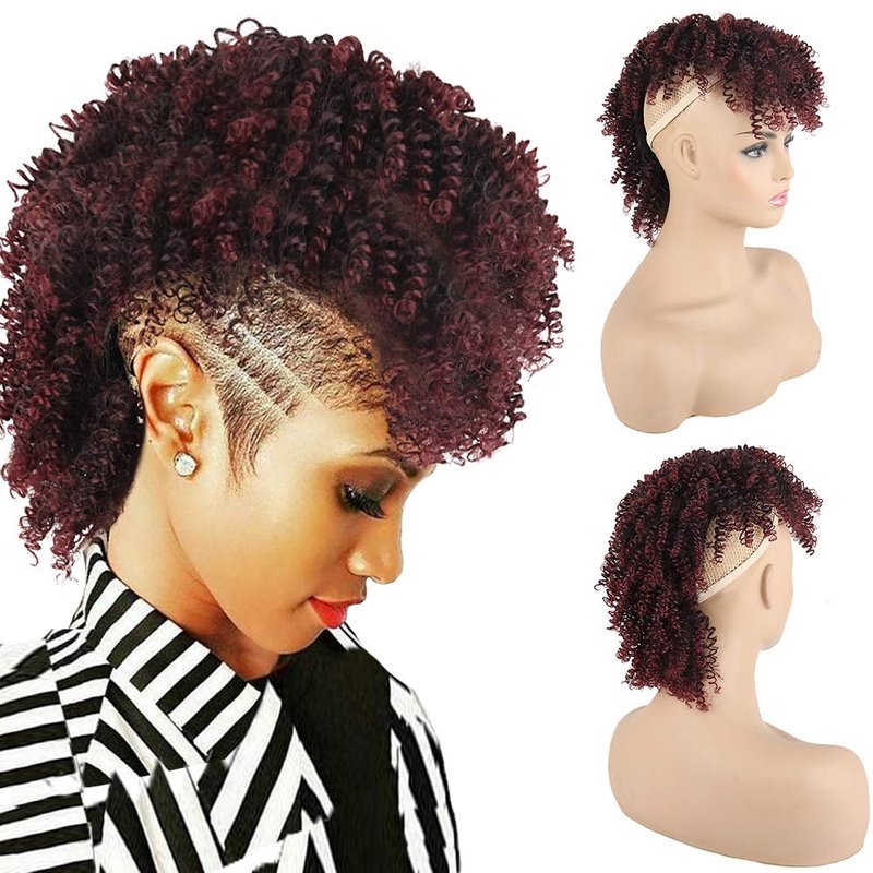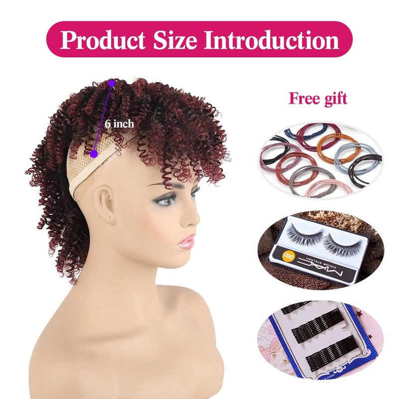 KRSI Women's Synthetic Red Wine Spring Curly Mohawk Wig with Bangs and Ponytail