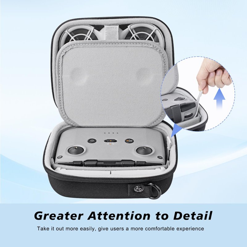 - Large Compatibility: Find a home for messy accessories, and protect your neo drone! The neo case is lightweight and perfectly keep everything neatly in place, offers perfect fitting space for dji neo drone, dji rc-2 remote controller, 3 x intelligent flight battery (one can install in the drone), spare propellers, type-c to type-c pd cable, screwdriver, spare propeller screw, rc cable (sub-c connector), power adapter, control joysticks and other accessories