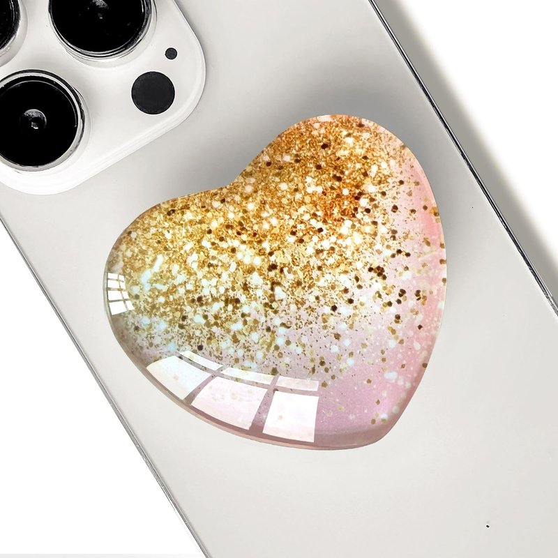 Ksadiye Expandiing Moblile Cell Phone Grip Heart Shape Glass Holder for Smartphones, Cellphone Collapsible Stand( Pink Gold
