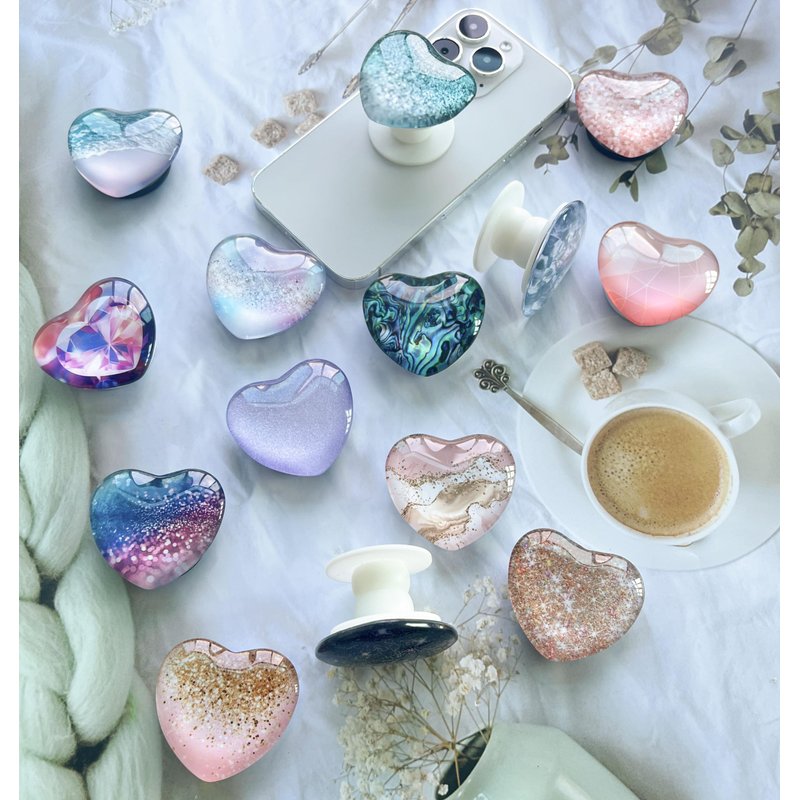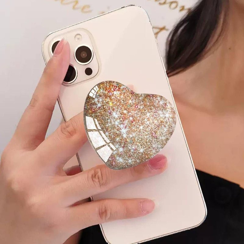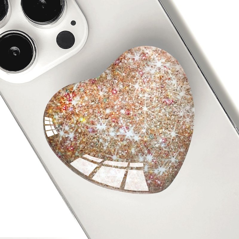 Ksadiye Expandiing Moblile Cell Phone Grip Heart Shape Glass Holder for Smartphones, Cellphone Collapsible Stand( Rose Gold