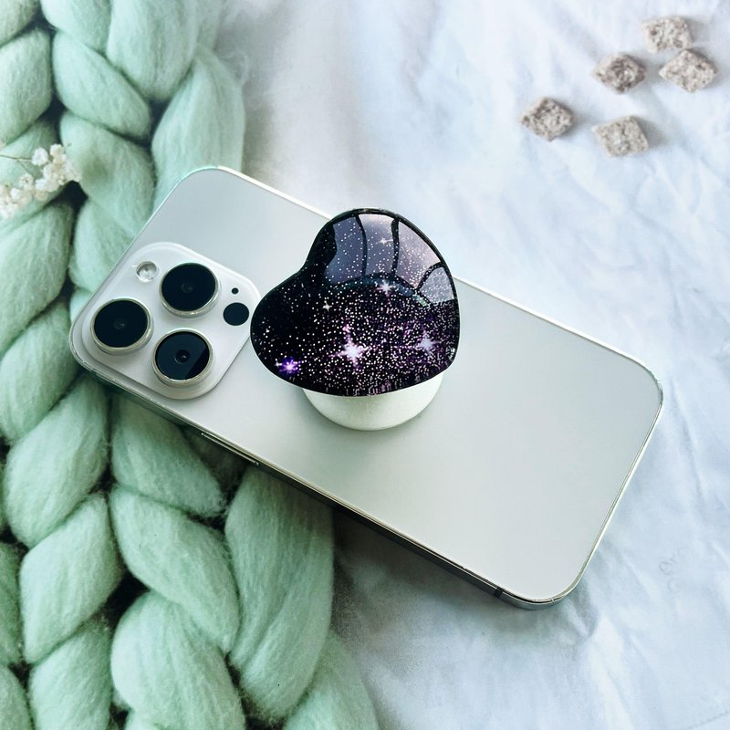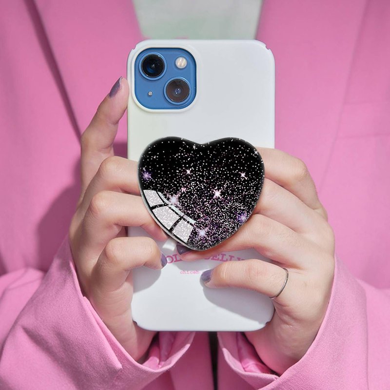 Ksadiye Expandiing Moblile Phone Grip Heart Glass Holder for Smartphones, Cell Phone Collapsible Stand( Purple Star Black