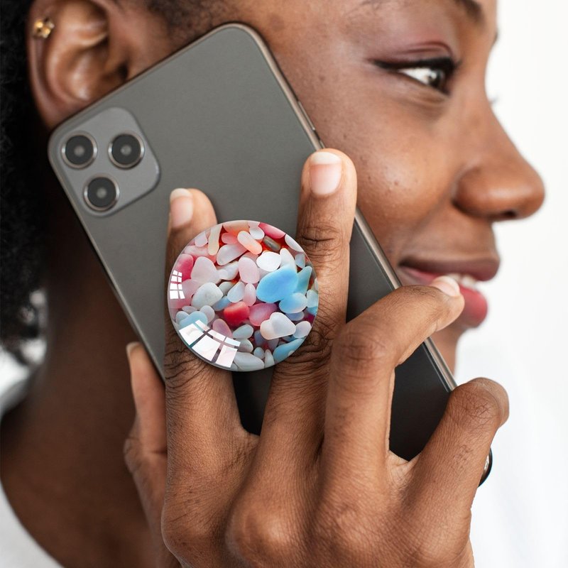 Ksadiye Phone Grip with Expanding Kickstand,Cell Phone Collapsible Stand Pink Blue White Stone Design for Smartphones