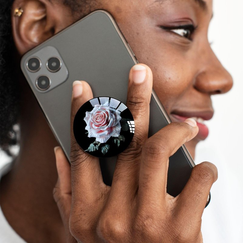 Ksadiye Translucent Clear Phone Grip with Expanding Kickstand,Cell Phone Collapsible Stand Pink Rose Flower Design for Smartphones
