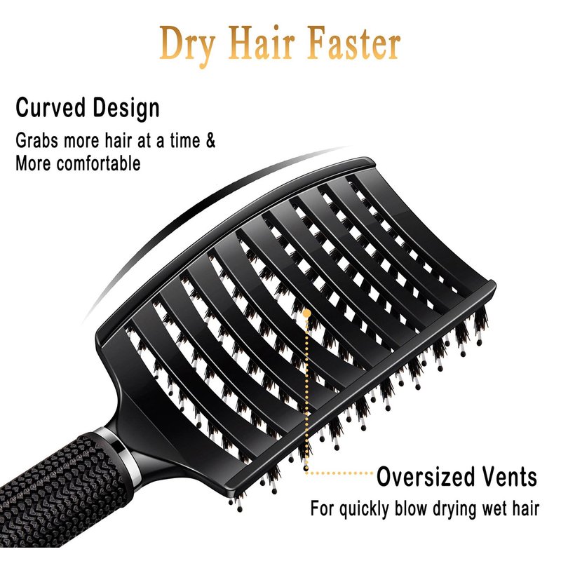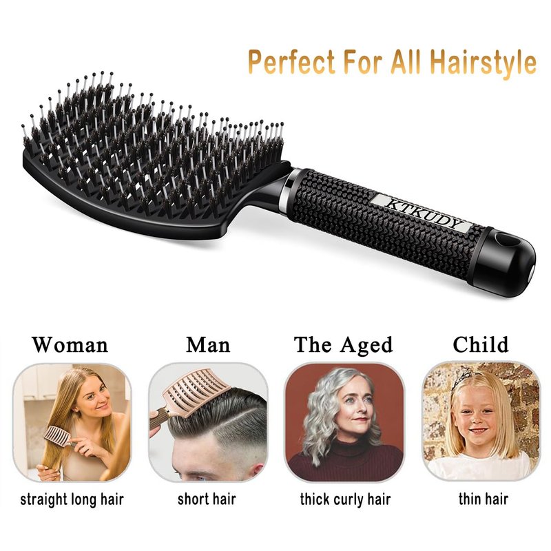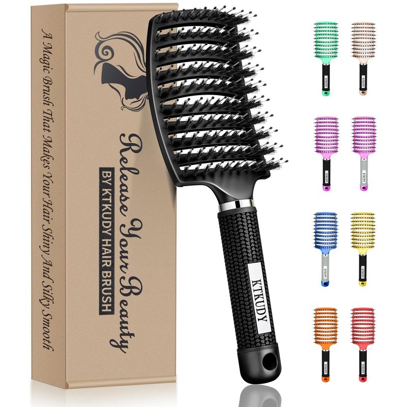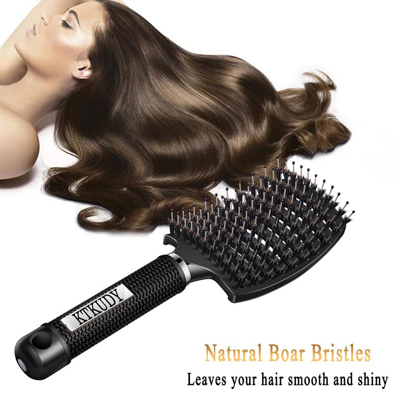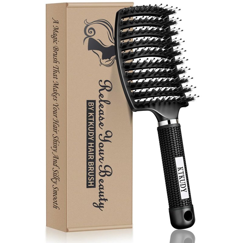 KTKUDY Detangling Brush Boar Bristles Hair Brush Make Hair Shiny & Healthier Curved and Vented Detangler Brush for Women Men Kids Wet & Dry Hair (Black)