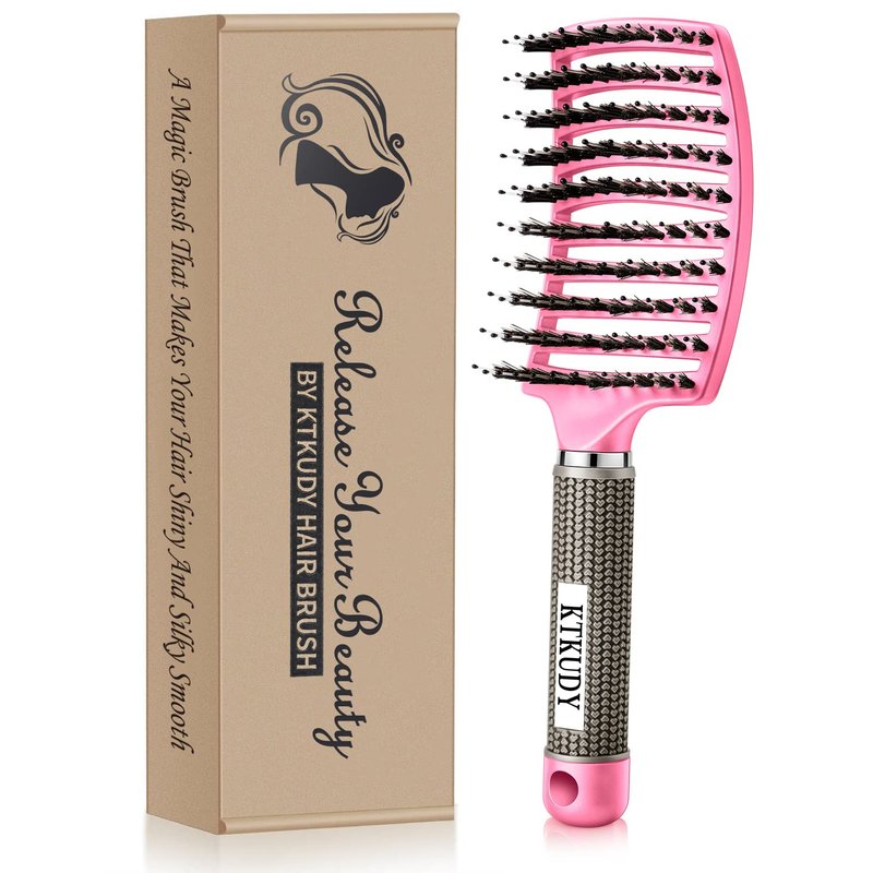 KTKUDY Detangling Hair Brush - Boar Bristle & Tangle-Free Design for Kids, Women, and Men - Perfect for Wet and Dry Hair - Smooth, Magical Pain-Free Styling (Pink)