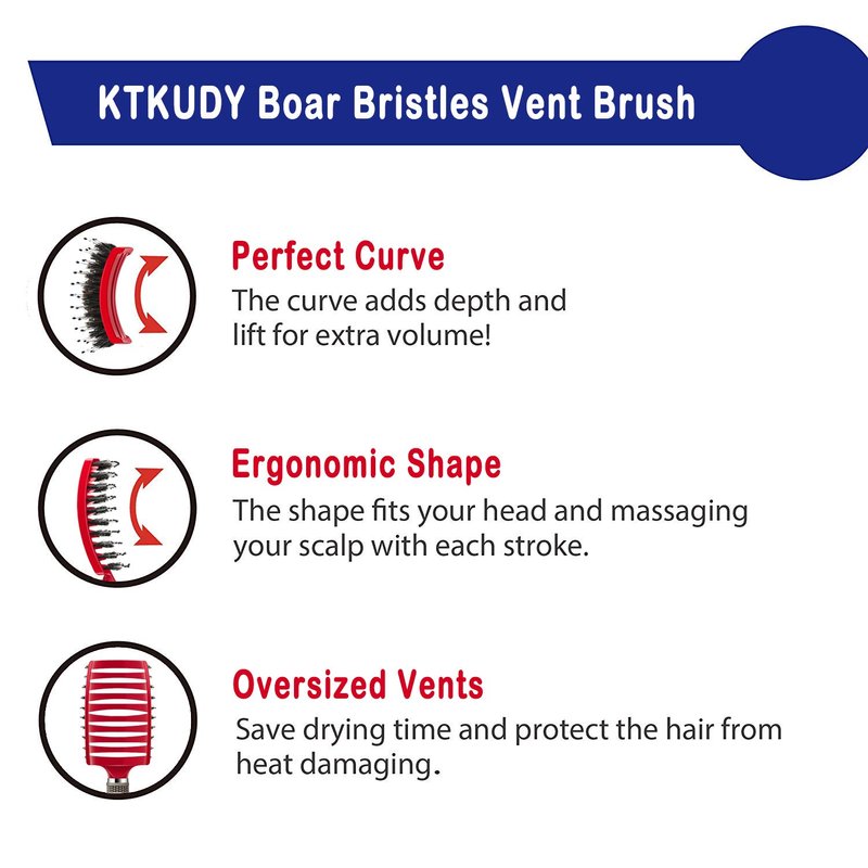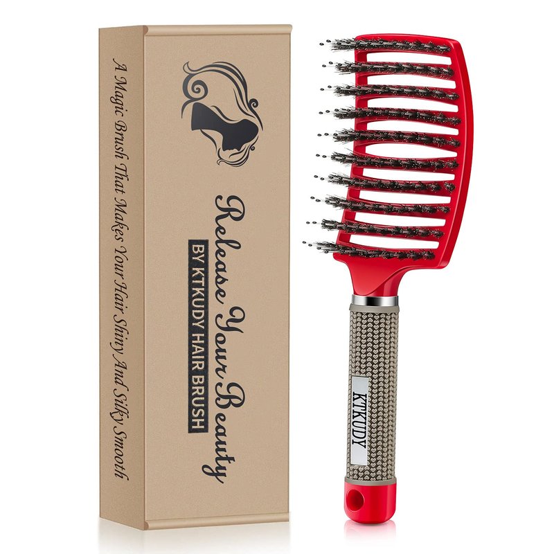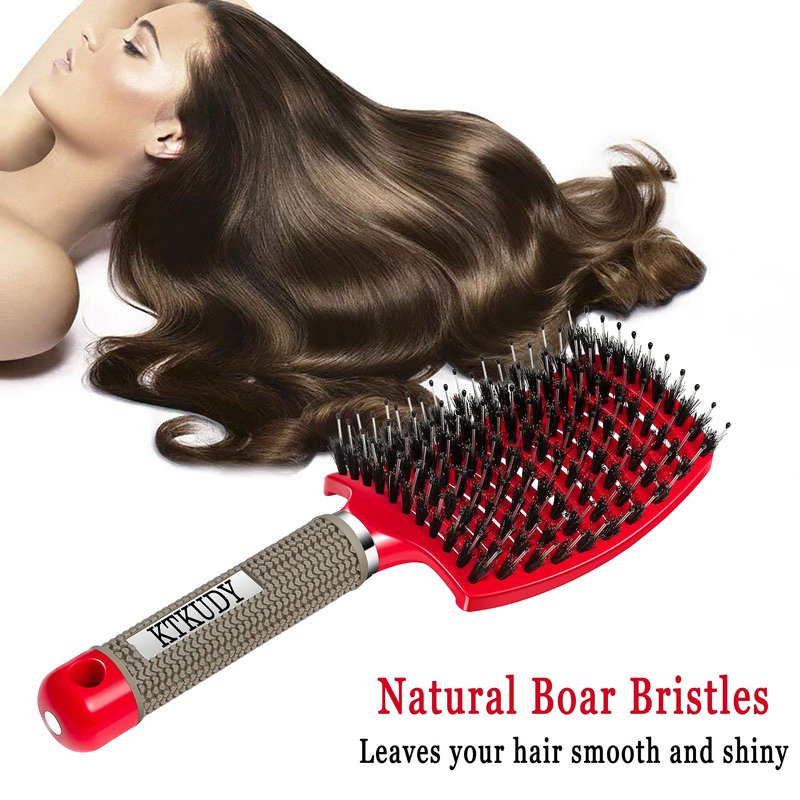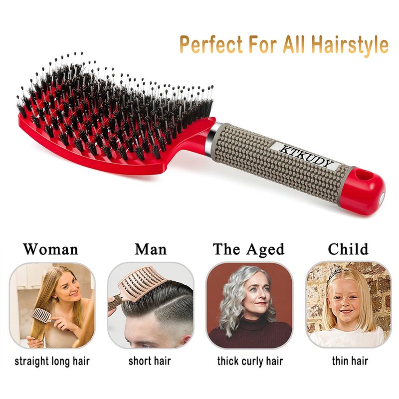 KTKUDY Detangling Hair Brush - Boar Bristle & Tangle-Free Design for Kids, Women, and Men - Perfect for Wet and Dry Hair - Smooth, Magical Pain-Free Styling (Red)